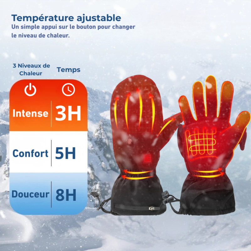 Les gants chauffants sont conçus pour offrir une expérience optimale, hiver après hiver. Le résultat : des mains toujours au chaud, sans compromis sur la légèreté ni la praticité.