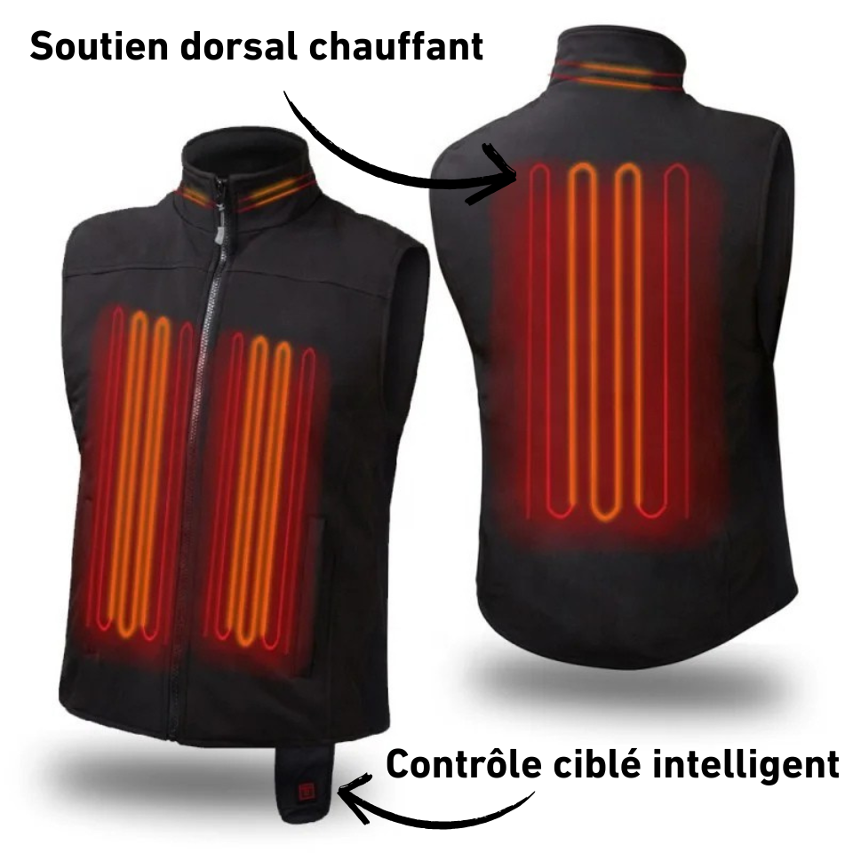 Fini les couches multiples ou les manteaux rigides. Ce gilet chauffant diffuse une chaleur homogène sur le dos et la poitrine grâce à un système USB intégré.