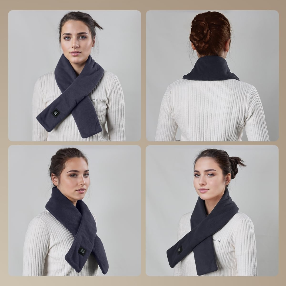 L’écharpe chauffante vous enveloppe d’une sensation de douceur réconfortante, même en plein vent.